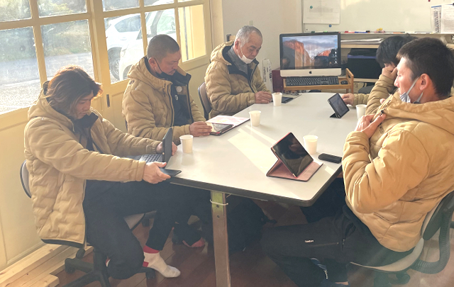 社員1人ひとりに専用タブレットを支給。進行管理や連絡も柔軟に取れるような仕組みを作っています。