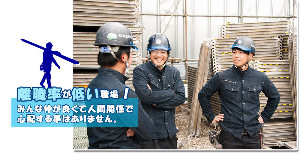 これまで当社を支えてくれているベテラン職人の安定感に加え、これからの東京足場を担っていく若いアナタの力を必要としています。
