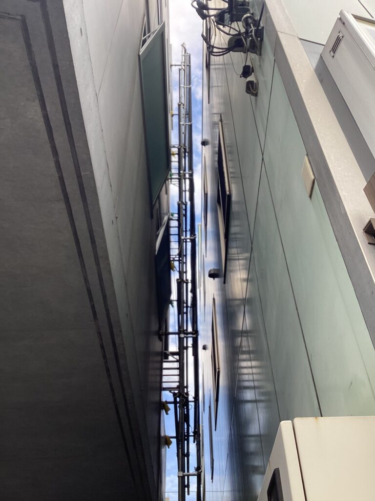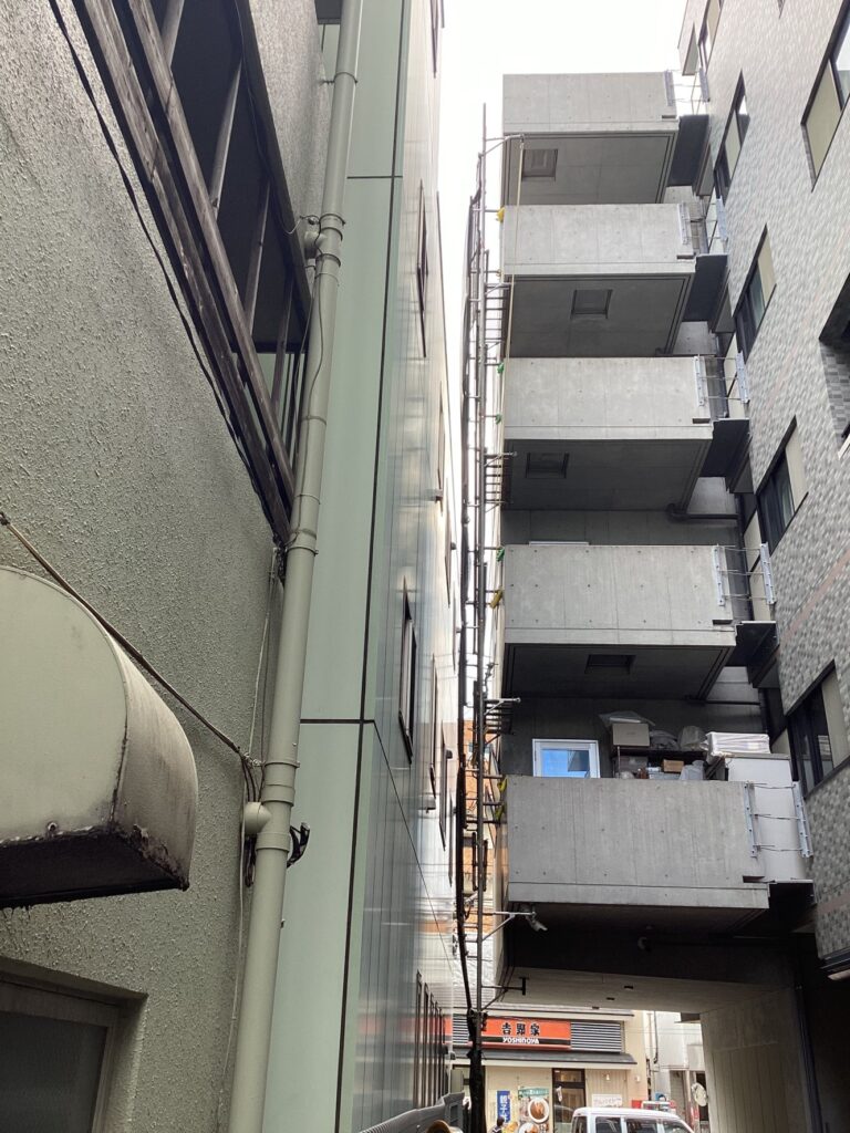 近隣の建屋やビルなどと近く、一般的な足場設置が困難な現場であっても様々な施工方法を熟知している職人が在籍しておりますのでご安心ください。